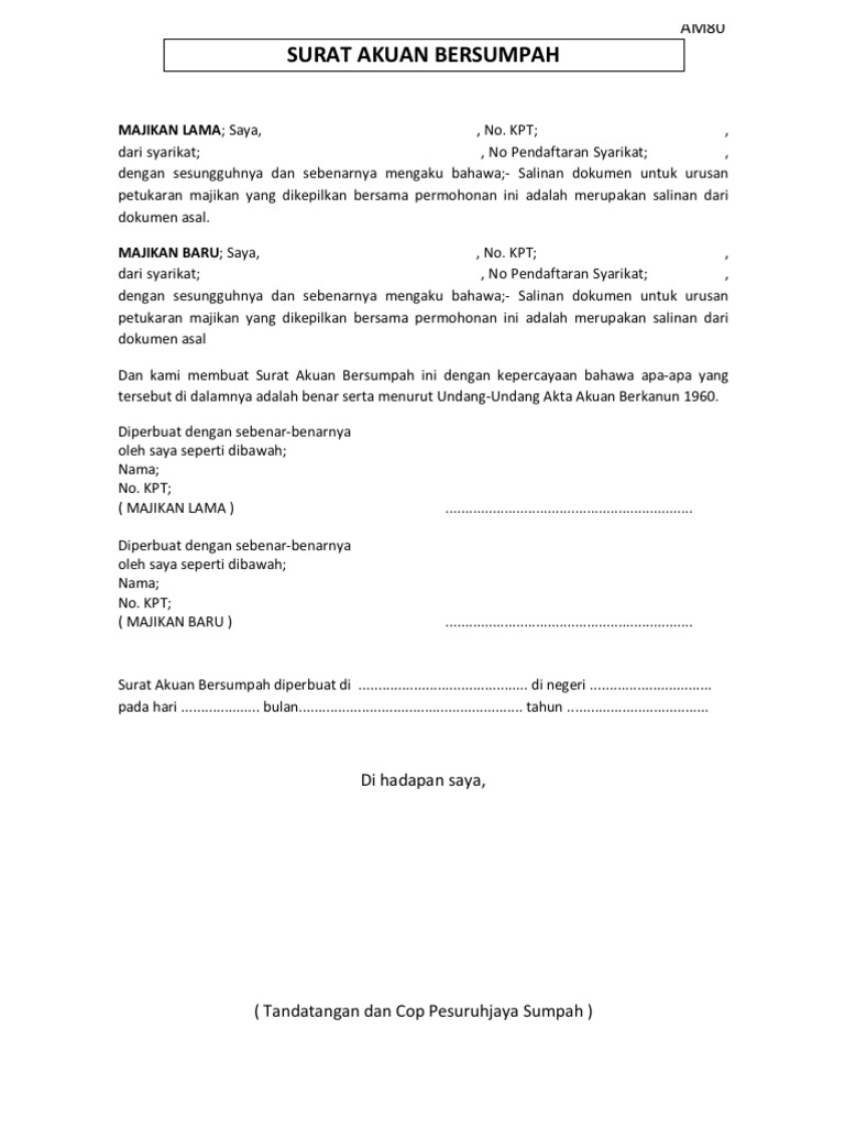 Contoh Surat Akuan Sumpah Tukar Nama Tanah Otosection